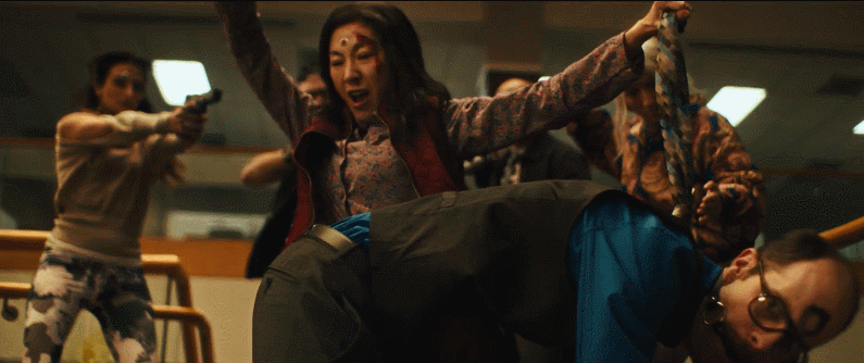 影片往往在数秒之内疯狂替换杨紫琼的多种造型,以嗑药般的极速剪辑,来呈现这种弹性十足的人生叠加。