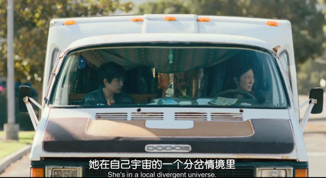 片中,主宇宙的伊芙琳看见没有丈夫的人生何其美好,分宇宙的韦蒙却表示若有来生,还要和伊芙琳一起报税、开洗衣店,可见,
