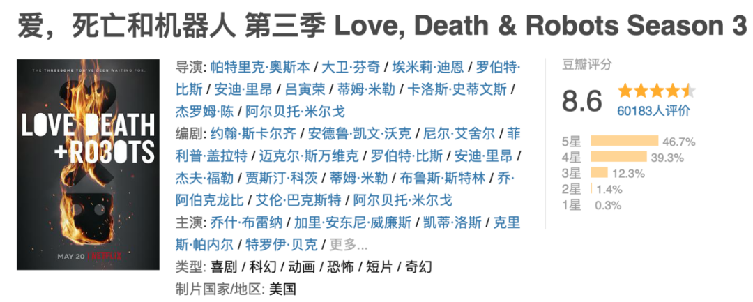 2019年,《爱,死亡和机器人》横空出世,现象级爆火。